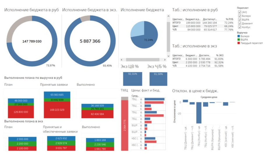 creating interactive reporting that includes cost and quantity indicators, revenue, plan-vs-actual analysis, broken down by production lines.